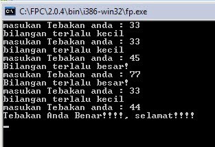 gotoxy(3,5);writeln('Hint: Masukan angka 2 untuk keluar');
